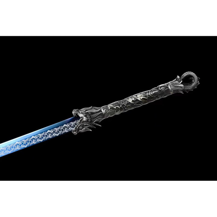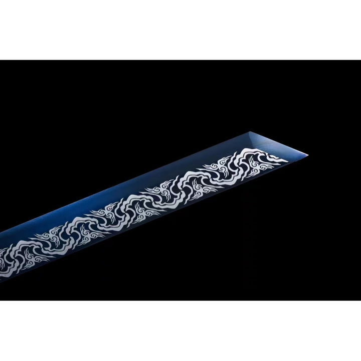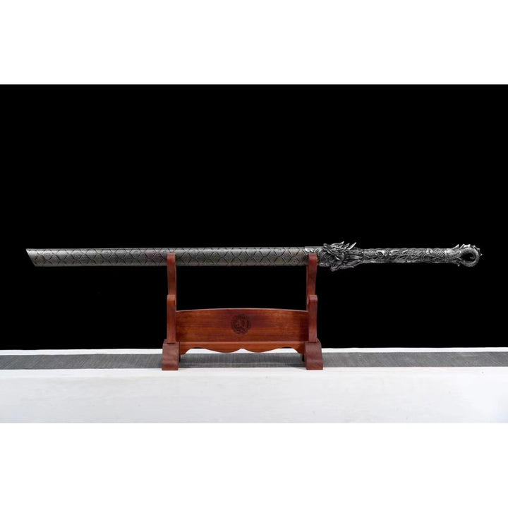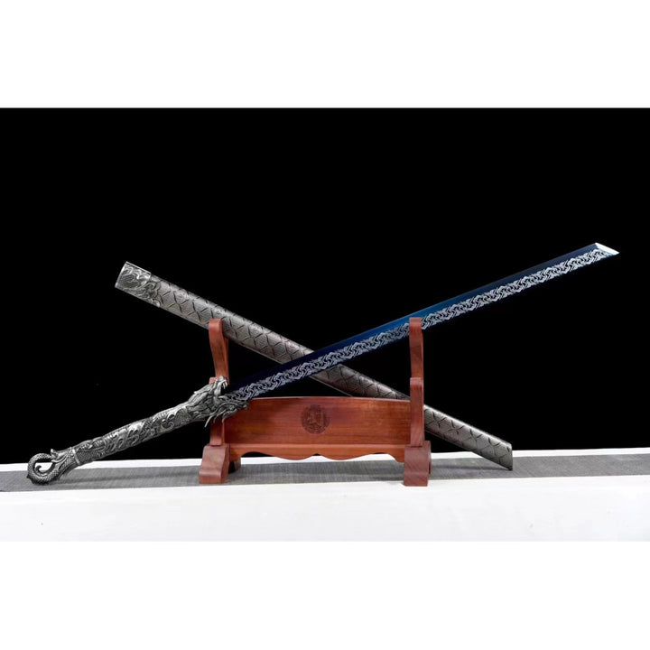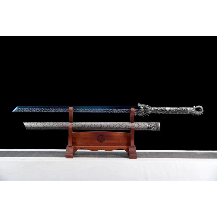 Exclusive mold opening fixture, metal handle!!! The golden ratio design has a total length of 111 centimeters and a handle length of 30 centimeters. It uses a metal handle for a comfortable and stylish feel. The blade length is 71 centimeters, the blade width is 3.8 centimeters, the blade thickness is 0.5 centimeters, and the net weight is 2.1 kilograms. It is treated with a manganese steel integrated calcination and blue carving process on the blade body, with a hardness of up to 60 °. The cutting iron does not damage the blade, and the sheath is made of solid wood wrapped in PU leather